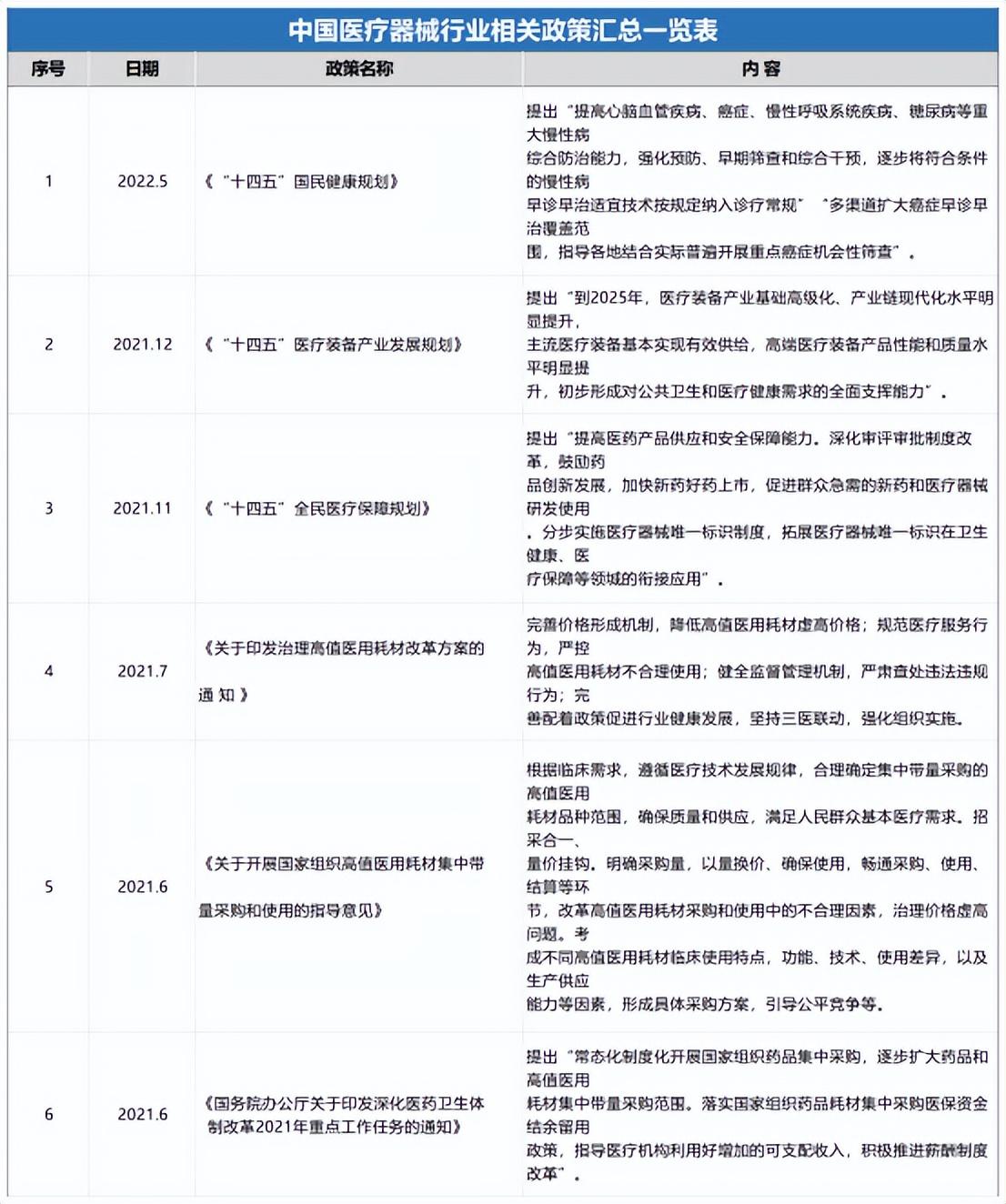 其中,在《“十四五”规划和2035年远景目标纲要》提到,在“十四五”期间,要打好医疗设备、关键零部件等核心技术攻坚战,培育先进制造业集群,推动医疗设备产业创新发展。