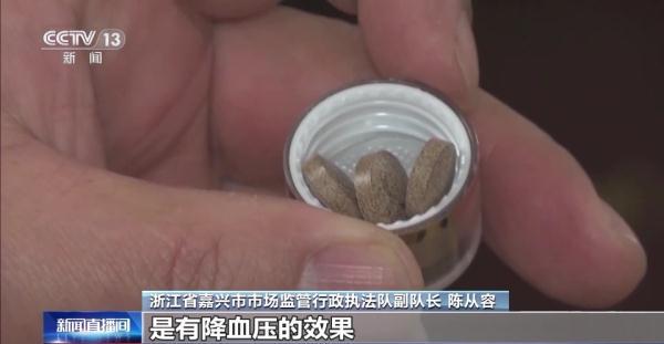浙江省嘉兴市市场监管行政执法队副队长 陈从容:压片糖果实际上就是一种普通的食品,那么普通食品是不能宣传治疗功效的,但是这个产品不仅宣传了治疗功效,同时大量的顾客反映,只需要吃半片,是有降血压的效果。
