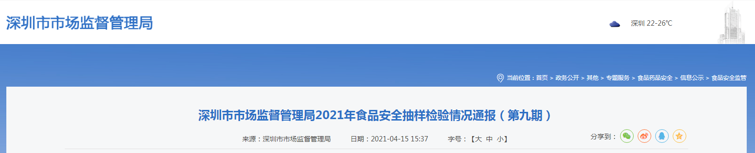 中国质量新闻网讯 2021年4月15日,深圳市市场监督管理局网站发布了2021年食品安全抽样检验情况通报(第九期)。据通报,本次抽检食品共1111批次,涉及经营主体352家,共检测食品指标4964项次。其中抽检方便食品16批次,未检出不合格样品。