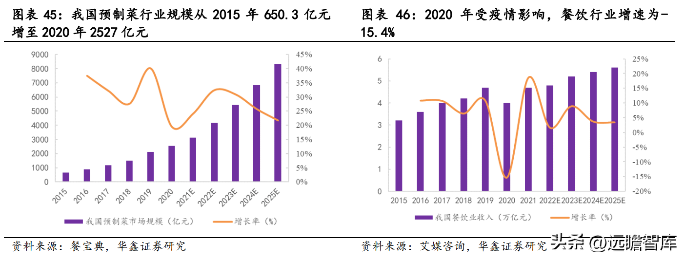 目前我国餐饮连锁化率为 35%,连锁餐饮门店数由 2015 年 2.37 万家增至 2020 年 3.82 万家,连锁餐饮数量未来有望持续提升,在成本压力下,降本增效之需将推动速冻食品需求逐步释放。
