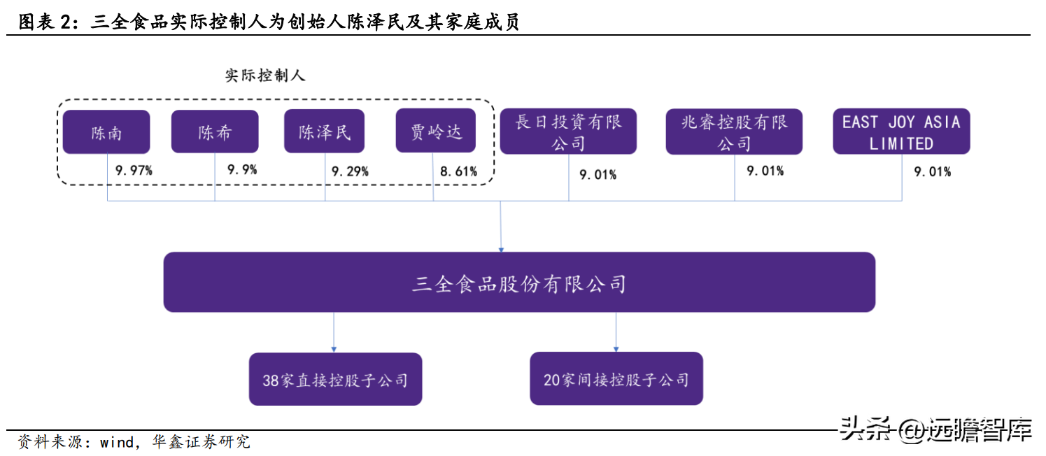 公司股权集中,高管利益与公司深度绑定。截止 2022H1,创始人陈泽民及其家庭成员陈南、陈希、贾岭达为公司实际控制人,合计持股(直接或间接)64.80%,股权较为集中。 公司主要高管(董事长、副董事长、董事及总经理、副总经理、财务总监)合计持股 3.33 亿股,占总股本 38%,与公司利益深度绑定。