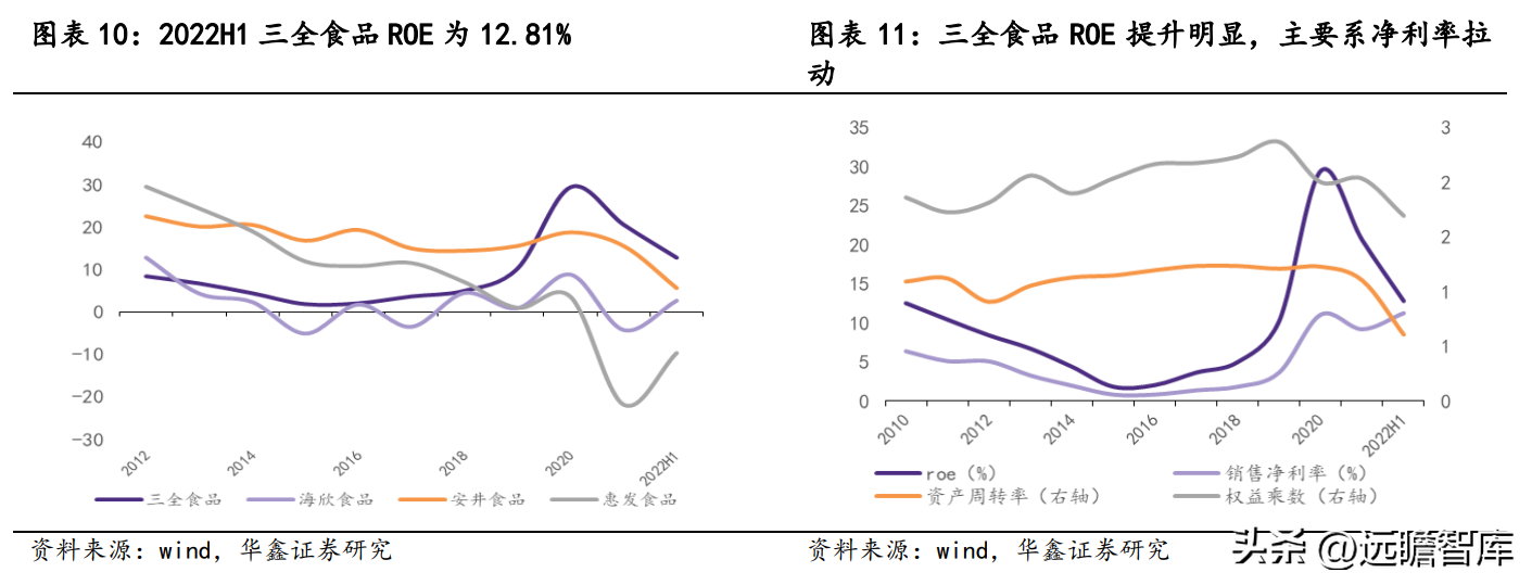 2018 年公司提出重点发力餐饮市场,并围绕消费场景不断开拓新渠道、新业态,2019 年与 7-Eleven 合作鲜食业务,打造餐饮即食场景;2020 年针对家庭火锅烧烤场景,推出三全涮烤汇。同时公司设立红标、绿标事业部,2019 年公司理顺内部机制,实行内部改革,改善渠道和产品结构,公司由此重获发展势能。