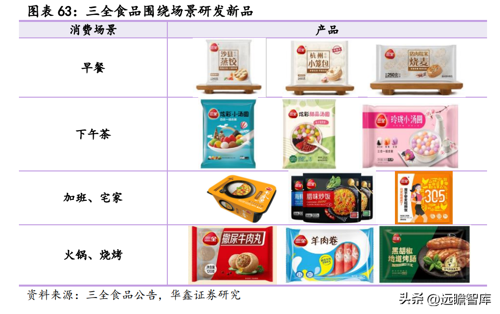 三全食品在备餐场景基础上,围绕涮烤、早餐等核心场景开拓新品类,精准定位细分市场。