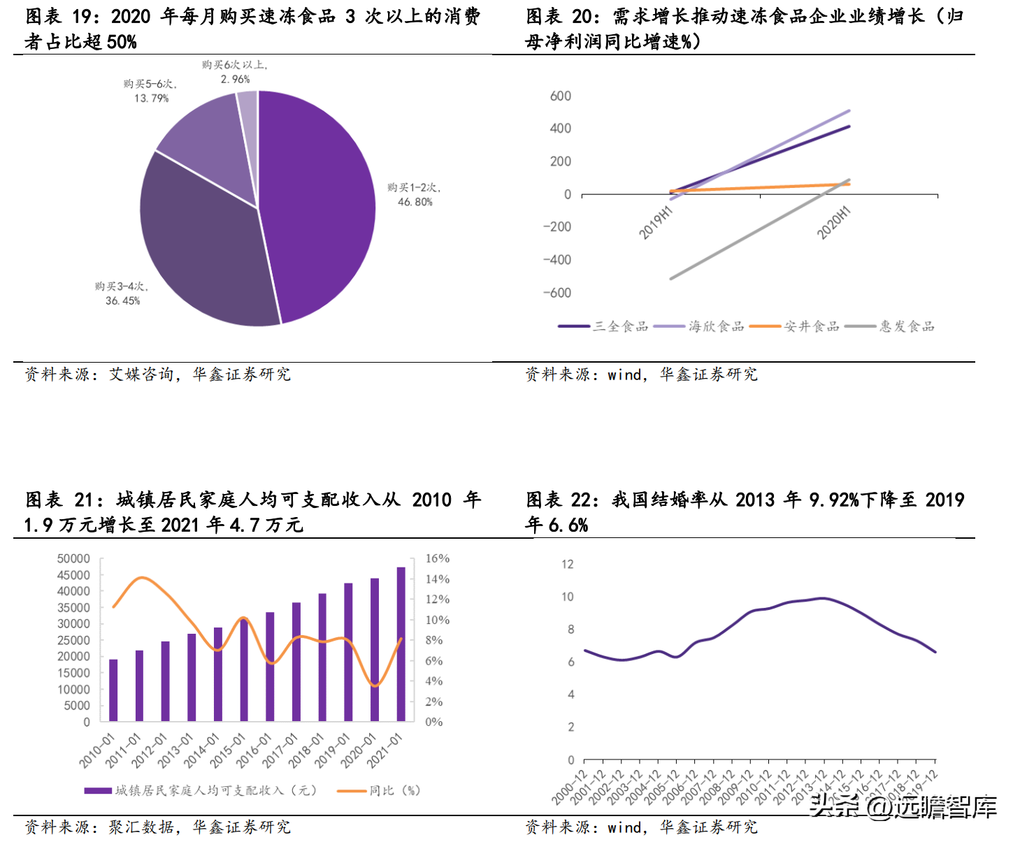 据艾媒咨询,2020 年每月购买速冻食品 3 次以上的消费者占比超 50%。