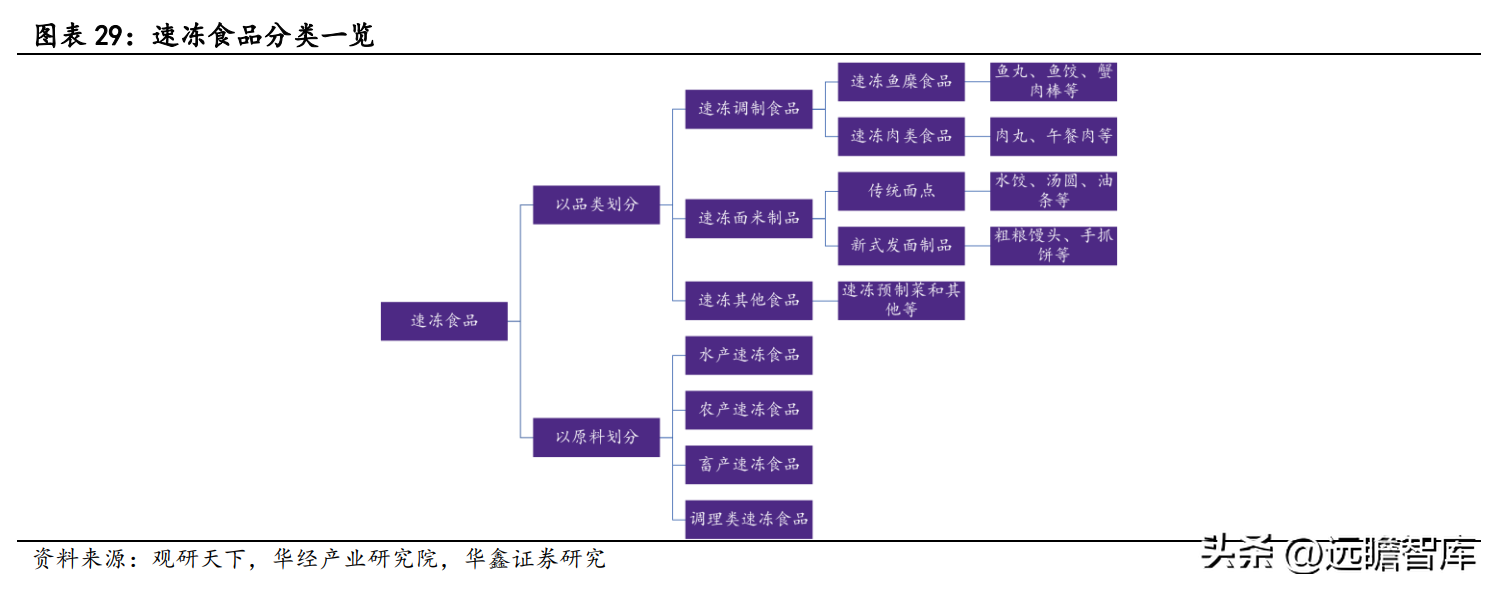 按照品类不同,速冻食品行业可划分为速冻面米制品、速冻火锅料制品、速冻预制菜等。其中速冻面米制品包括传统面点(水饺、汤圆、油条等)以及新式面点(手抓饼、粗粮馒头等)。