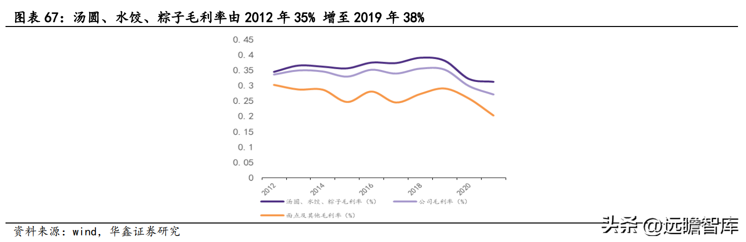 汤圆、水饺、粽子毛利率由 2012 年 35% 增至 2019 年 38%,主要系公司优化产品结构所致。新品创新及存量产品优化有望推动毛利率水平持续提升。