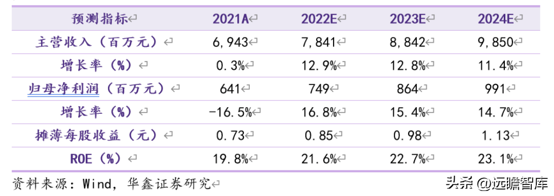 我们预计 2022-2024 年 EPS 为 0.85/0.98/1.13 元,当前股价对应 PE 分别为 19/17/14 倍。