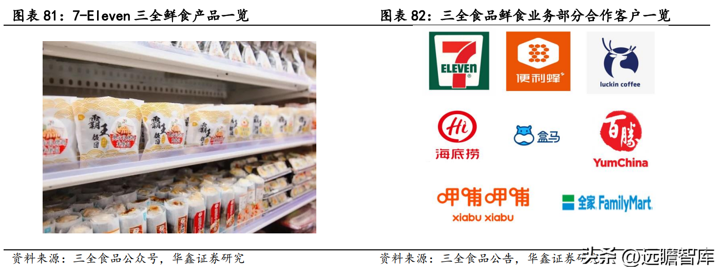 通过运营区域便利店系统,三全食品能更深入了解便利店渠道及客户特性,提升鲜食业务及供应链协同能力。鲜食业务具有高毛利特点,已成为日资便利店差异化竞争利器,据《2018 年便利店发展研究报告》,7-eleven 在中国市场鲜食销售占比 40%,毛利占比 60%。