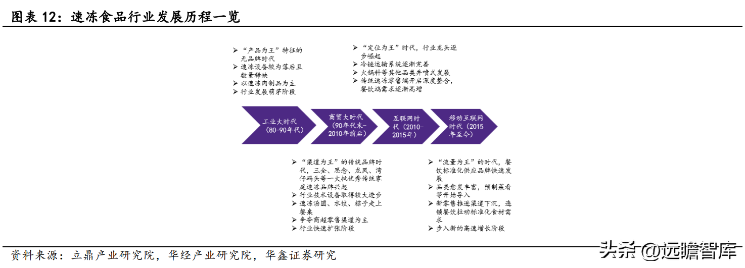 速冻食品行业发展可分为四个阶段: