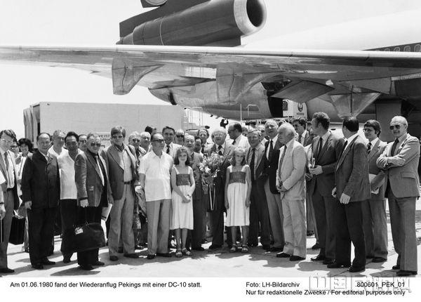 1975年,中德政府达成中德空运协议。1980年4月8日,汉莎航空首架航班--汉莎DC途经卡拉奇和曼谷,抵达中国首都北京,由此开通了中国内地第一条定期航线-北京航线。随后,为满足乘客需求,汉莎航空又推出了一系列额外服务,并于1997年4月推出了从北京直飞法兰克福的航班,每天一班。