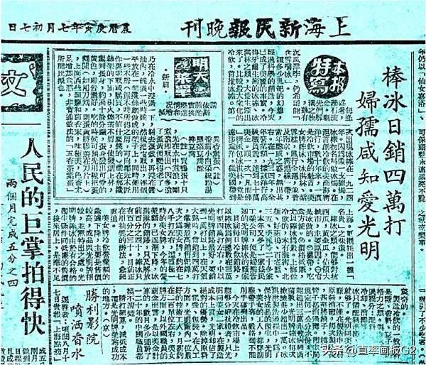 1950年8月20日《新民报(晚刊)》发表的本报特写《棒冰日销四万打妇孺咸知爱光明》真实地记载道:“……在沪首创冷饮的美商海宁洋行,数十年来,一直是冷饮市场的魁首。美女牌棒冰、冰淇淋、紫雪糕,风行全沪,并普及南京,宁沪线一带,当年声威之盛,无出其右。在一九三四年,全年营业额,据该洋行高级职员说,达到七十万美金。头一次‘凡而佛’牌纸包冰淇淋,竟是远涉重洋,从美国带到上海。更衬托出一种‘名贵’之味道。……本年又多了一家益民工业公司,便是妇孺皆知的光明牌棒冰的厂家,目前每日冷饮销路,以棒冰为例总数在三万打至四万打左右,中以光明牌销路最好,要销到一万打以上,在天气大热时,曾销到四万打,掌握最高销售纪录……”